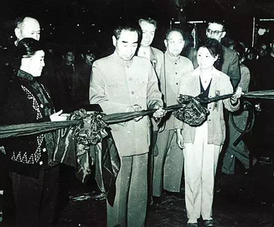1958年4月,包钢一号高炉破土动工,《人民日报》就此发表社论,提出“包钢为全国,全国为包钢”的口号,神州大地从此掀起支持包钢的热潮。1959年9月26日,包钢一号高炉首次出铁,比原计划提前了一年。剪彩典礼结束后,周恩来登上十多米高的炉台,向欢呼的各族群众挥手致意,并发表讲话,赞扬包钢人在戈壁荒漠上建起一座雄伟壮丽的高炉。