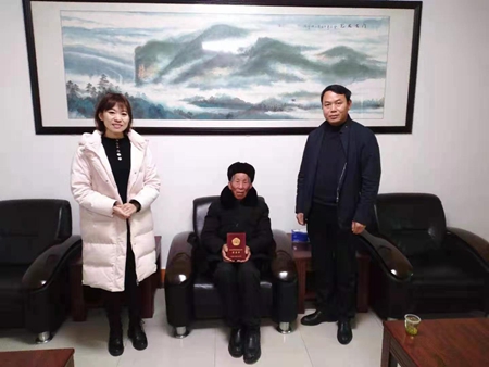 当天,镇党委副书记任娟一行来到魏世成家,与老人亲切交谈,仔细聆听他讲述革命时难忘的经历,与他一起重温艰苦斗争的革命岁月,并送上慰问金及祝福。