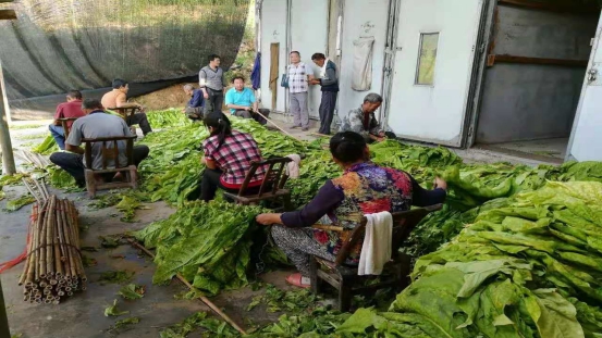 村民陆坤是当地的种烟能手,今年种了185亩烟叶,一大早他便开着皮卡拉着自家的烟叶来到烘烤车间,指导当地群众编烟、上架。“由于今年雨水好,没有出现过大风,加之镇烟站加大了技术服务力度和配套设施建设,还把培训班办到田间地头,确保了烟叶的质量和产量,算算账今年大概能收入80万元”。洋溢的笑脸藏不住他的喜悦。像这样的种烟能手,当地还有很多,他们在发展烟叶产业的同时,也大力带动了当地老年人就近务工增收。