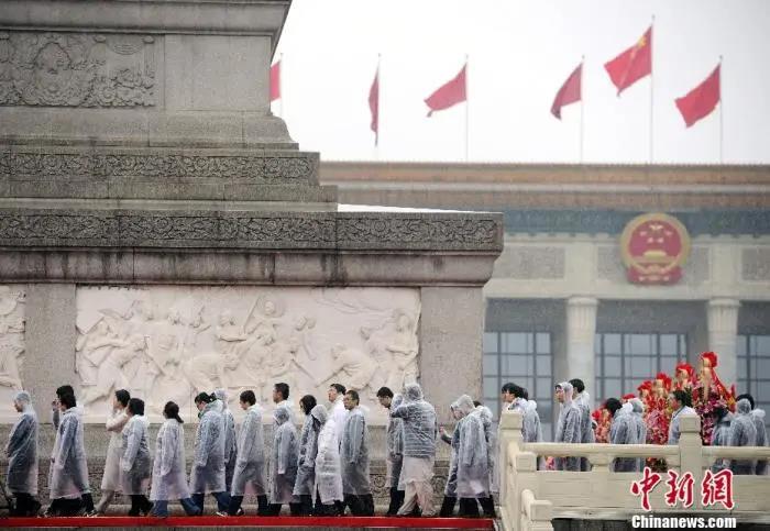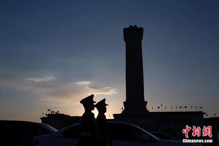 资料图:武警战士从人民英雄纪念碑前走过。中新社记者 泱波 摄