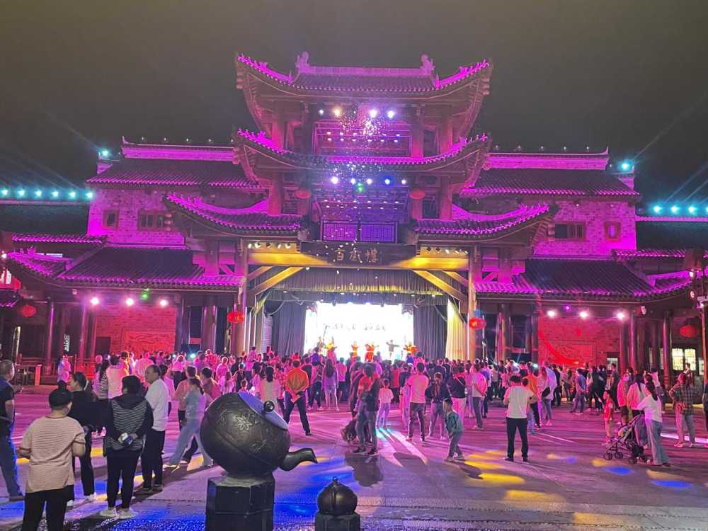 夜幕降临,西关印象里盏盏红灯笼点亮起来,古色古香的明清仿古建筑,在五光十色的灯光映衬下,色彩斑斓、流光溢彩,格外雅致。游客们沿着青石板铺就的古朴小径,品尝地方美食,欣赏戏剧、皮影等中国传统文化特色表演。
