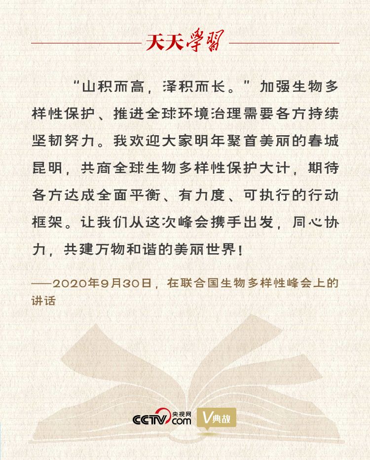 天天学习10月11日,联合国《生物多样性公约》缔约方大会第十五次会议(COP15)第一阶段会议在春城昆明拉开帷幕。本届大会主题为“生态文明:共建地球生命共同体”,这是联合国环境公约缔约方大会首次将生态文明作为大会主题。中国将同各方共商全球生物多样性治理新方略,共同开启全球生物多样性治理新进程。