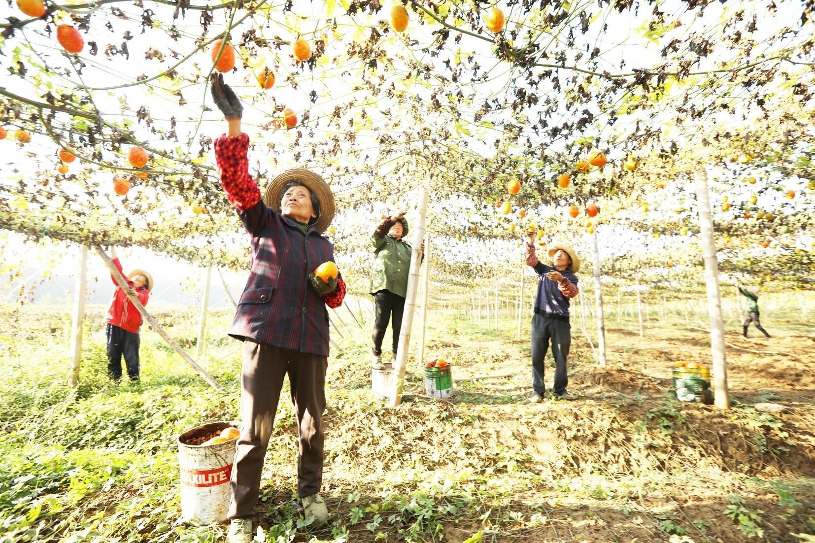 房县新闻网讯:近日,房县军店镇中村村农民在中药材基地采收吊瓜。目前,全县中药材种植面积超过50万亩,年均实现产值20亿元,其中北柴胡、白芨、绞股蓝、虎杖通过国家地理标志产品认证,中药材片剂远销日本、韩国、越南等多个国家和地区。