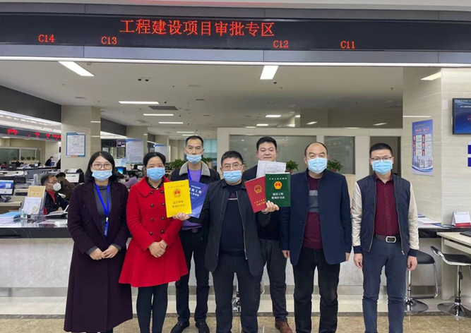 湖北国林汽车公司董事长李云国领到“五证”后与县政务服务大厅帮办代办人员留影表示感谢
