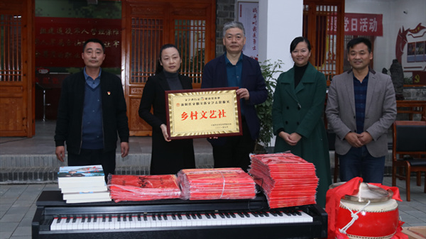 活动现场,市文联为首批授牌的乡村文艺社捐赠了电子钢琴、音响、锣鼓等文化文艺用品;市音协志愿者代表为大家表演了精彩的文艺节目;市县美协、书协会文艺志愿者现场挥毫泼墨,为大家创作并捐赠书画作品。