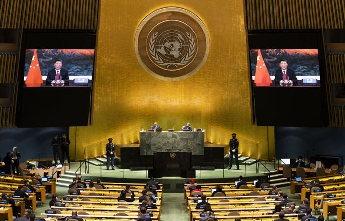 2021年9月21日,习近平总书记以视频方式出席第七十六届联合国大会一般性辩论。
