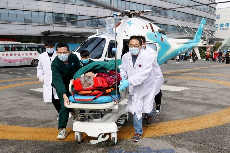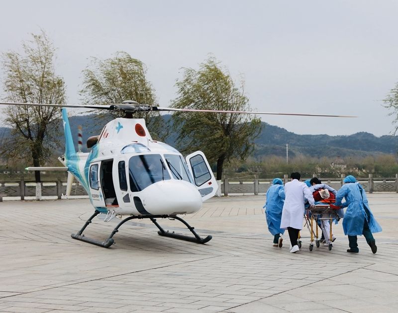 接到求助后,十堰人医党委委员、副院长刘杰高度重视,考虑到患者陆路转运较慢,且途中路途颠簸有加重病情的风险,决定空中转运,并立即通知医院急救站上报市急救中心。同时,联系十堰市公安局110指挥中心联动襄阳市公安局110指挥中心帮助协调直升机起降场地安保等工作。市急救中心同意启动航空救援预案,同时联系襄阳市急救中心帮助协调当地救护车转运对接工作。十堰人医急危重症中心副主任李虎年立即通知中心急救人员和中航材航空救援十堰备勤机组做好起飞准备。