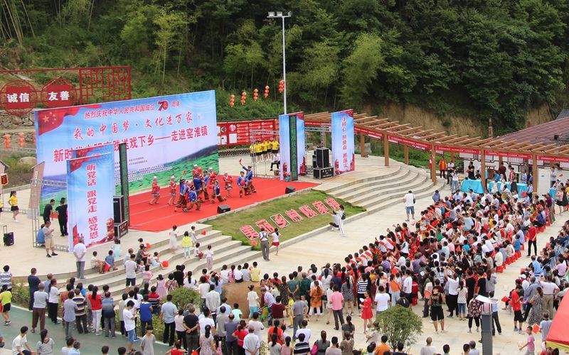 由房县县委宣传部、文旅局、融媒体中心、窑淮镇政府联合主办的“我的中国梦·文化进万家”新时代文明实践送戏下乡活动在陈家铺村举办, “我和我的祖国”主题快闪、特色农产品推介、文艺演出等活动内容丰富,受到群众一致好评。