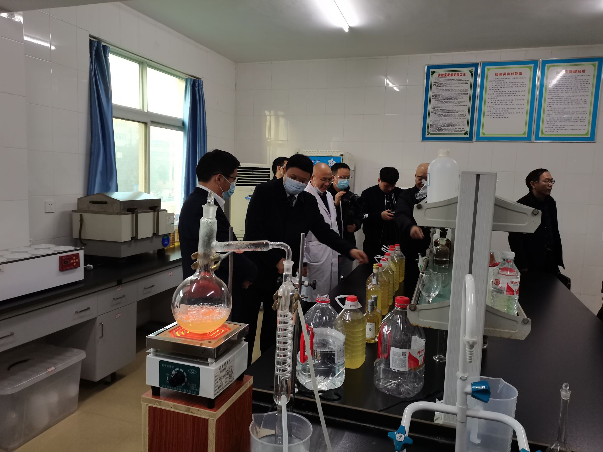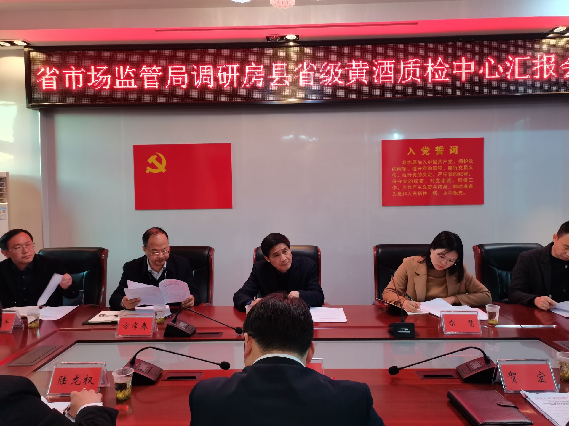 在公检中心随后召开的座谈会上,中心党组书记、主任贺宏同志汇报了申报省级黄酒质检中心建设工作开展情况,调研组对房县黄酒产业不断壮大、公共检验检测中心建设等方面给予肯定,认为房县具备创建省级黄酒检验检测平台软硬件基础。一是有县委政府的高度重视;二是有雄厚的黄酒产业基础;三是公共检验检测中心有人员、技术、资质、设备、检测经验基础,达到了省级检验检测平台的建设条件,表示下一步省局尽快批复项目立项,房县尽快启动项目申请验收,要面向房县、面向鄂西北、乃至全省黄酒产业发展,发挥省级黄酒质检平台作用。