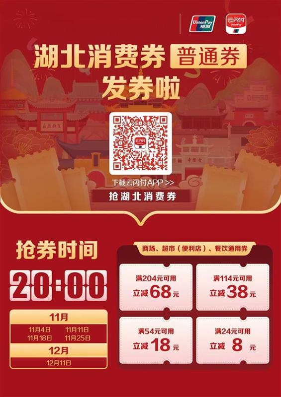 因为湖北消费券,11月份的每个周四都变得让人期待!11月11日20时,“双十一”档第二批湖北消费券普通券正式发放。错过了第一批湖北消费券的你,赶紧收藏这份领券攻略,定好闹钟,当晚8点准时开抢。