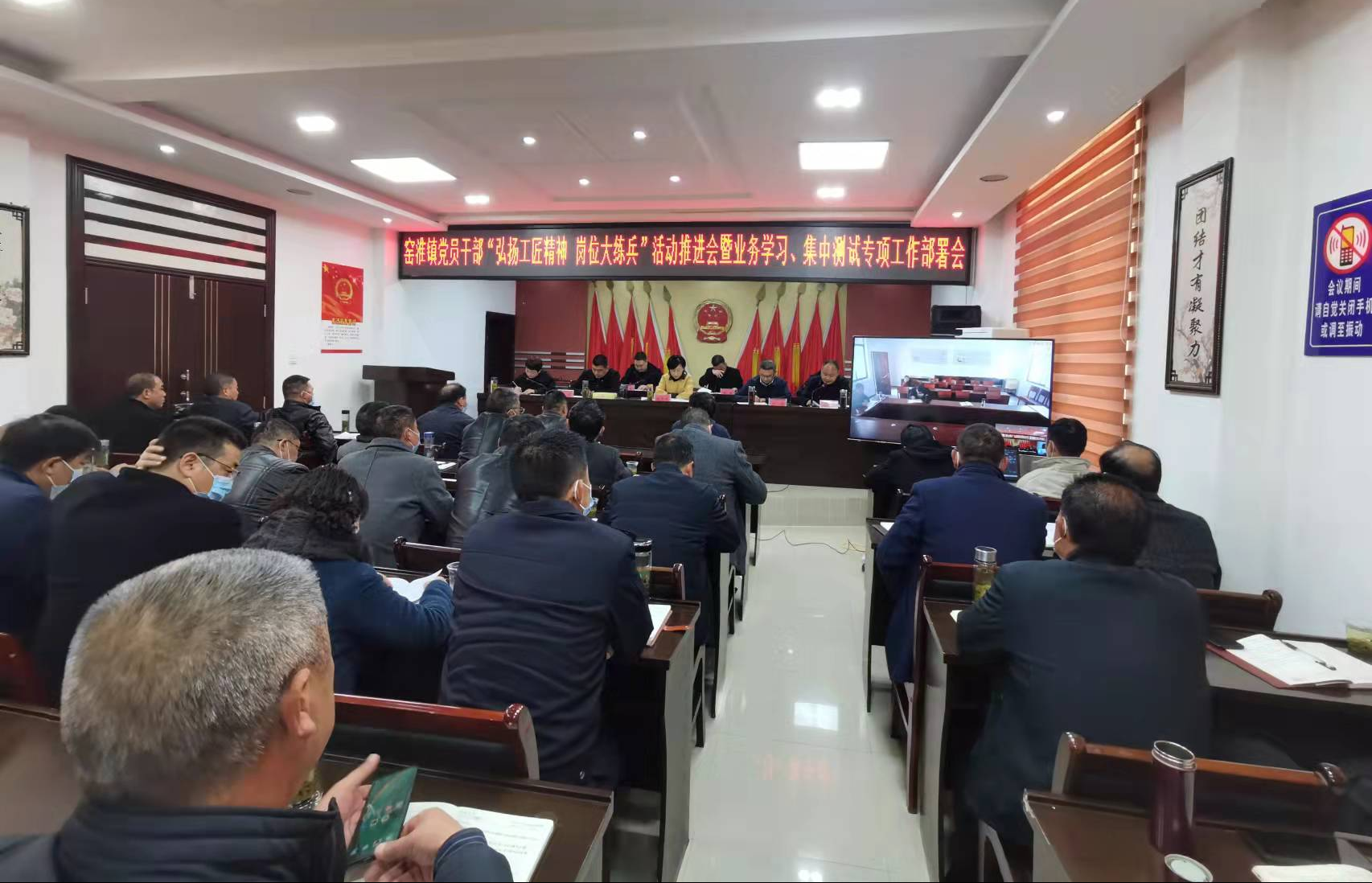 房县新闻网讯 通讯员 李博 徐江垚 报道:11月19日,窑淮镇组织开展“弘扬工匠精神岗位大练兵”系列活动,活动采取“个别讲、集中学、全体测”形式开展,全体机关干部、村书记、驻村工作队长和第一书记、镇直单位负责人在主会场参会,“村两委”干部、驻村工作队员在视频分会场参会。