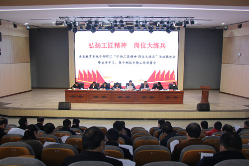 房县新闻网讯:11月19日下午,县教育局组织召开“弘扬工匠精神 岗位大练兵”活动推进会,进一步对岗位大练兵活动进行安排部署,全县教育系统在职干部职工参加会议。