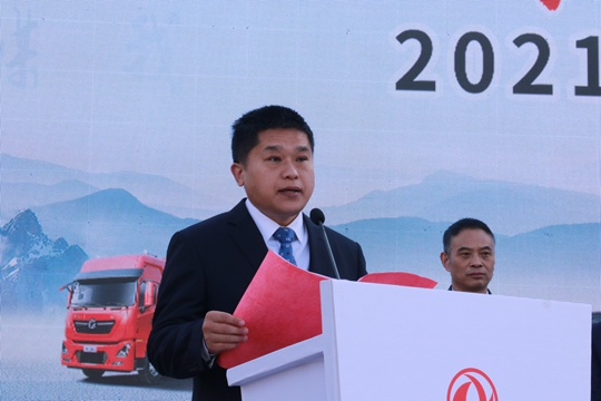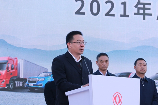 东风汽车集团有限公司工会副主席孙三宝在仪式上讲话。他说,房县是东风公司重点对口支援的县市之一,在全面建成小康社会、打赢脱贫攻坚战的伟大进程中,东风公司携手房县,高质量完成扶贫任务,助力房县如期实现脱贫摘帽。今年四月,东风公司首个政企共建产业协作(汽车消费)示范项目在房县启动,政企双方都出台了一系列购车惠民政策,目的主要是通过东风汽车的产业优势,以产业协作促进民生改善,让利房县人民,拉动地方经济增长。截至10月底,房县东风品牌车辆销售已超过1800台,全年将突破2000台、挑战2500台。面向“十四五”,东风公司将坚守“为用户提供优质汽车产品和服务的卓越科技企业”的定位,努力践行“品质、智慧、和悦”的价值观,在人民享有美好汽车生活和建设汽车强国进程中贡献力量,进一步加强与房县产业合作,再携手共创辉煌。