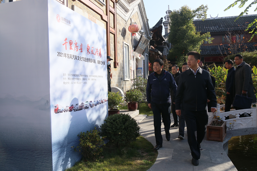 房县新闻网讯 通讯员 张立林 报道:11月22日,“千里房县 东风浩荡”2021年东风汽车文化节走进房县活动正式启动,作为系列活动之一的书画、摄影艺术展也同时在房县西关印象艺术中心开展。东风汽车集团有限公司工会主席何伟、副主席孙三宝,产业协同办主任周中;东风汽车有限公司副总裁郭涛;东风乘用车公司党委副书记、纪委书记段仁民,东风商用车有限公司工会工作部部长张晓军,质量部部长何杰;东风特种商用车有限公司党群工作部部长鲁军虎;房县县委书记纪道清,县委副书记、政法委书记马兰起,县委常委、常务副县长高勇,县委常委、统战部长、县总工会主席丁选清,县委常委、副县长黄克伟,县委常委、县委办主任林云国,县人大常委会副主任饶正涛,政协副主席熊祖友出席活动。