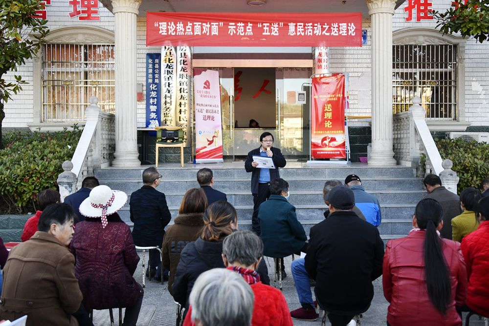 房县新闻网讯 记者 绳晓 通讯员 周靖宇 报道:11月30日,由汉江师范学院、房县县委宣传部、化龙堰镇联合举办的“理论热点面对面”示范点“五送”活动在化龙堰镇化龙村开展,汉江师范学院120余名师生为当地群众送理论、送法律、送技术、送文化、送致富信息。汉江师范学院校领导周进芳,县委常委、宣传部长王玲参加相关活动。