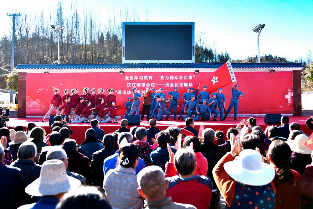 活动在精彩的文艺演出中拉开序幕,来自汉江师范学院的师生们为村民带来舞蹈、独唱、器乐演奏、踏板操、小品等形式丰富的节目,现场气氛热烈,掌声、喝彩声不断。
