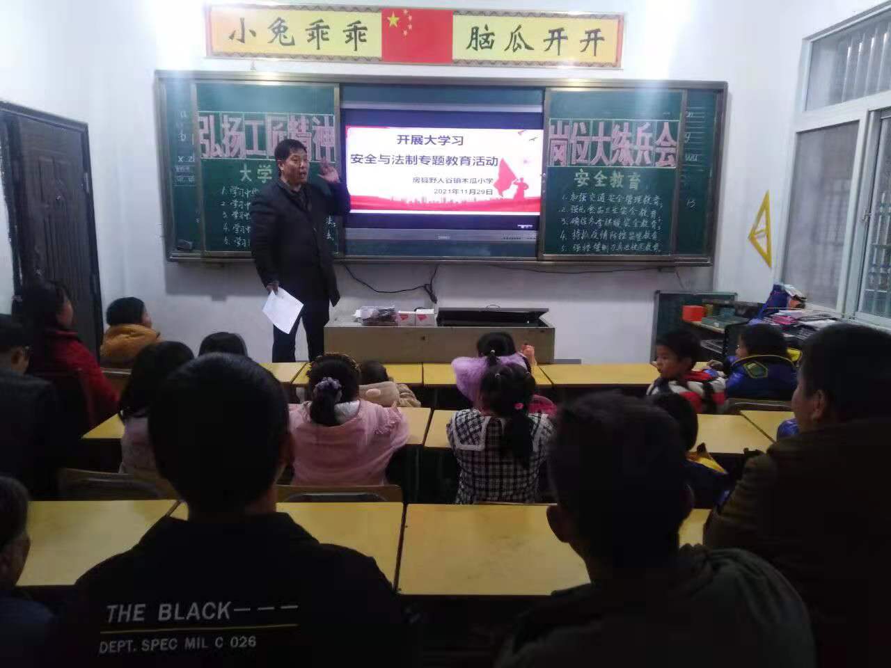 活动采用集中宣学与班队会学相结合的方式进行。开展了两场普法专题学习讲座:一是组织普法大学习:具体学习了《中华人民共和国教育法》、《中华人民共和国义务教师法》、《中华人民共和国未成年人保护法》、《中华人民共和国家庭教育促进法》及《湖北省安全条例》;二是安全警示大学习:具体学习了; 加强交通安全管理教育、强化食品卫生安全教育、确保冬季取暖安全教育、持抓疫情防控监管教育、强力管制刀具危险品进校教育及严防欺凌危害学生安全教育等内容。还根据学生的年龄特点和心理特点,从法治,交通,消防,反欺诈,自我保护方面为全校师生进行了法治教育,积极引导学生运用所学到的法治知识,保障自身合法权益不受侵害。
