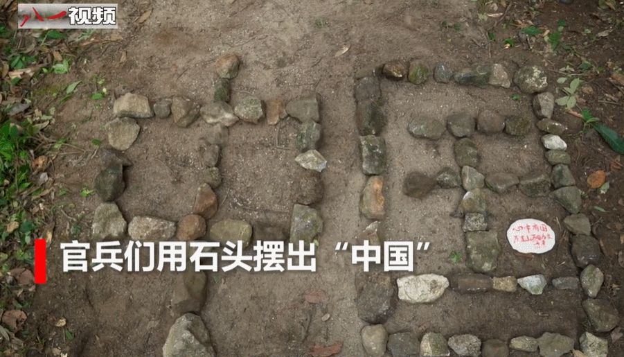 他们用石头拼出“中国”的字样