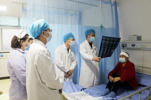神经外科主任医师李德龙介绍,病人在家里突然发病,头疼呕吐昏迷。家属拨打120,接诊时患者双侧瞳孔都大到边了,呼吸也不是太好,赶紧接过来之后行急诊CT,显示左侧颞叶大量脑出血,破入硬膜下,脑室里也有出血,需要立即手术。在显微镜下,患者属于畸形血管破裂出血,经过6个小时的高难度手术,把畸形血管切除,清除血肿将近200毫升。术后一个星期病人意识状态基本恢复,在神经外科经过近一个月的精心治疗,患者目前恢复肢体活动,四肢肌力正常,说话语言清晰,痊愈出院。