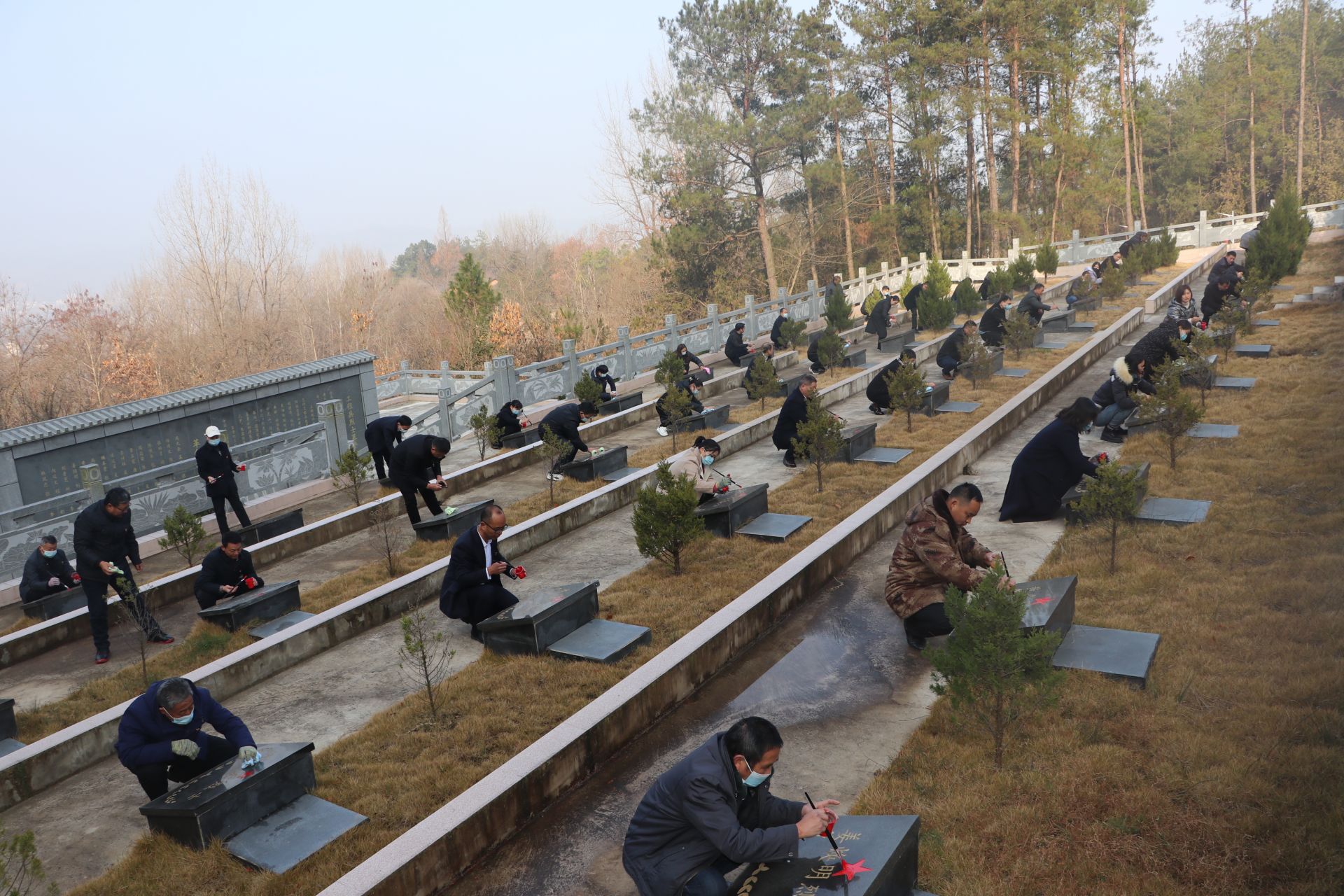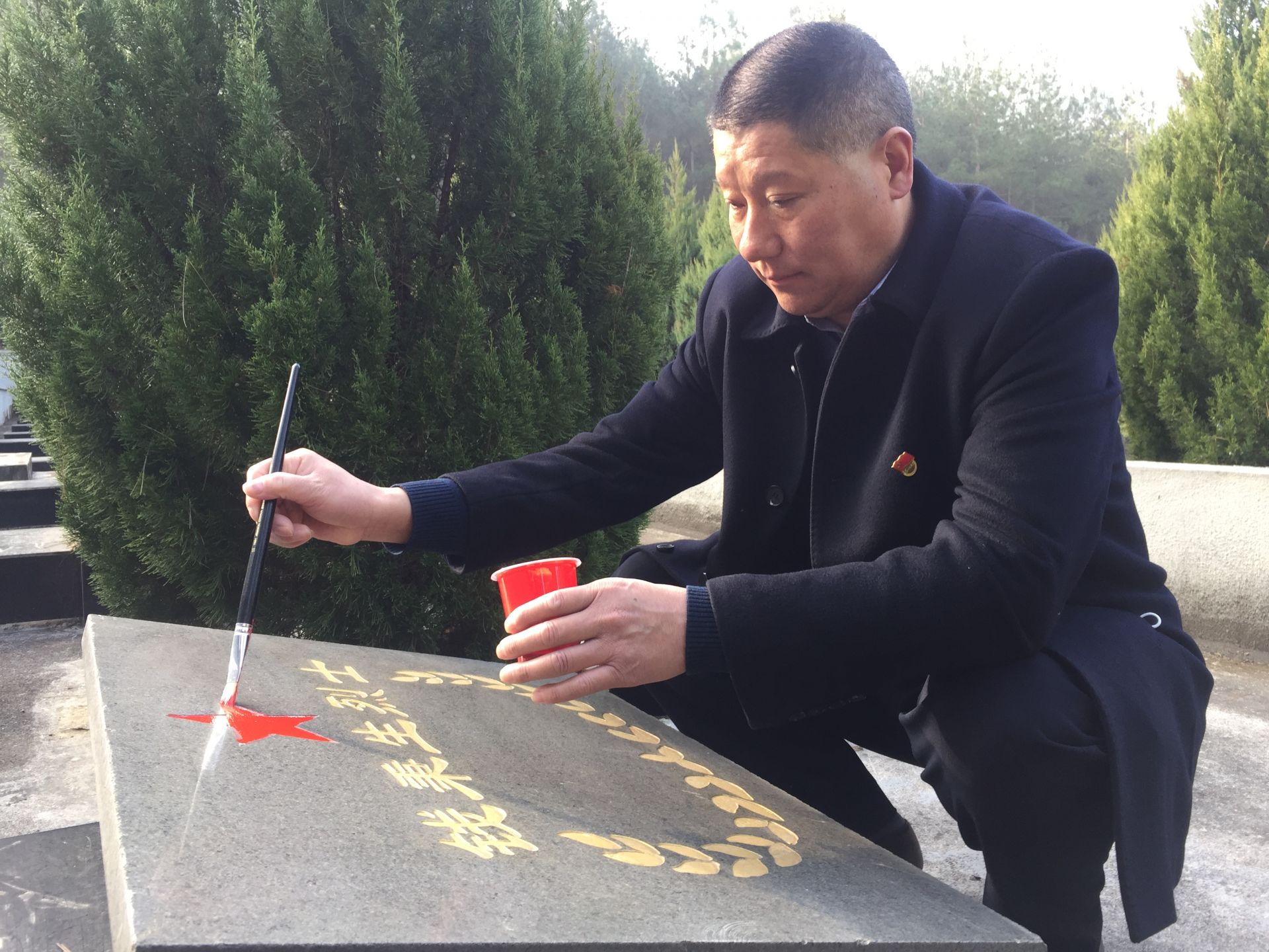 在红军十八烈士墓碑和零散烈士墓碑前,党员干部们怀着敬仰之情,小心翼翼地把189位烈士墓碑上面的灰尘擦去,认认真真地为墓碑上的红色五角星“描红”,每描一笔,都刻画了对先烈们的沉痛追思;每描一画,都描摹着对新生活的无限感恩。