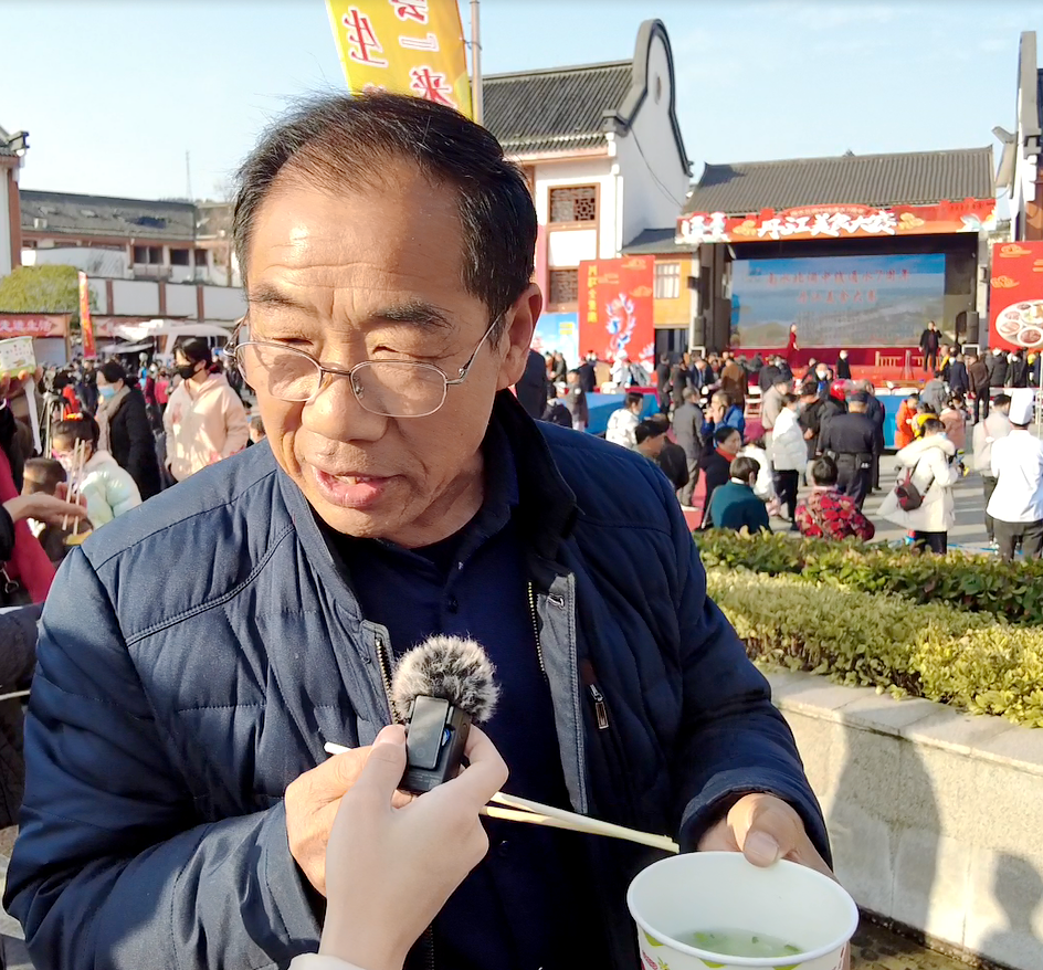 “刚刚品尝了我们新鲜的鱼汤,口感非常好,肉质鲜嫩多汁,而且很有营养,也很有弹性,所以我觉得来到丹江来必须要品尝丹江的鱼,真的是太好吃了!”