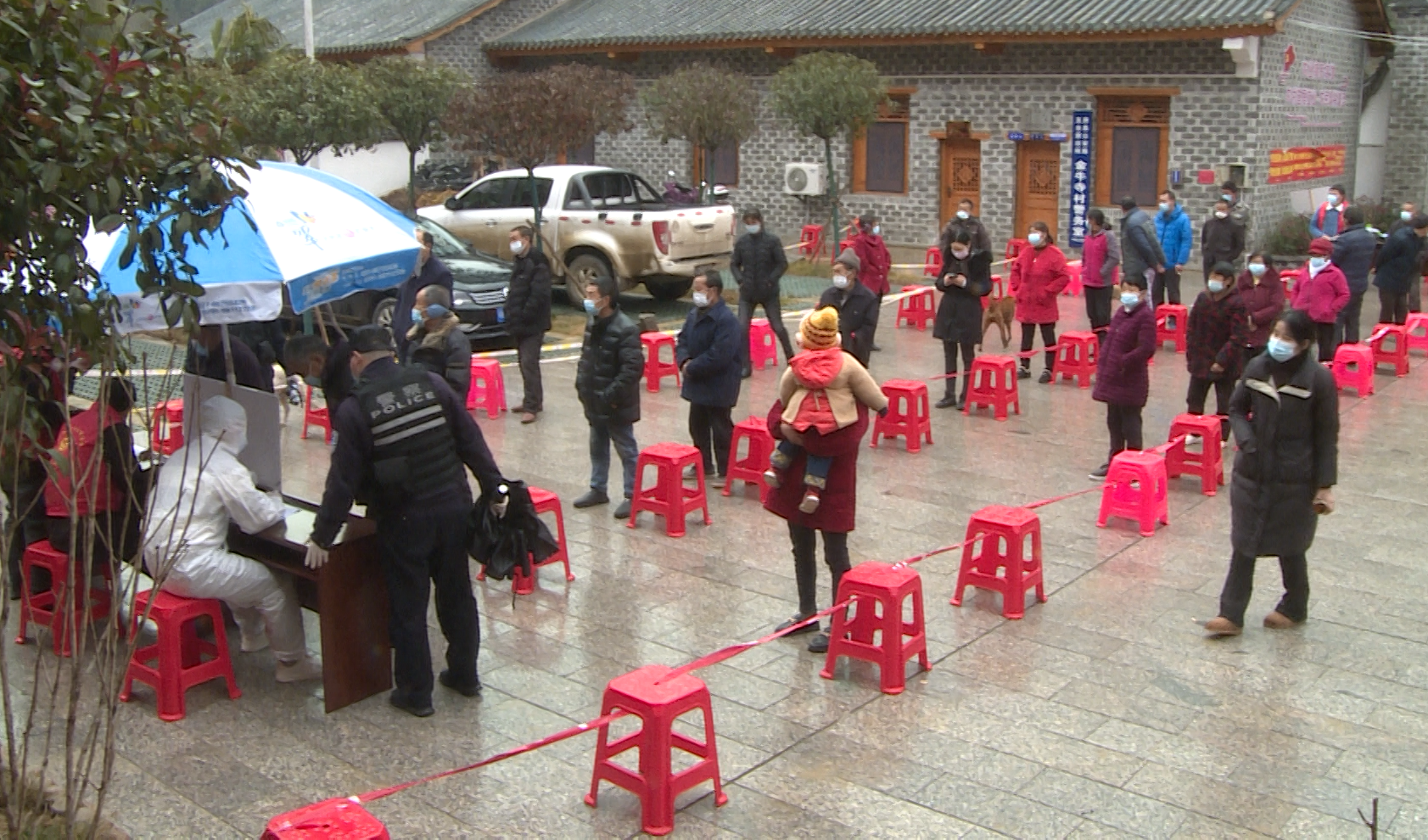 “请大家提前准备好身份证、健康码、行程码,全程佩戴口罩,保持1米间隔,有序排队……”群众在工作人员的引导下,有序排队进行测温、信息登记区、核酸采集;针对部分居住偏远,出行不便的群众,工作人员通过专车接送或上门采样的方式,确保全员核酸检测应测尽测。