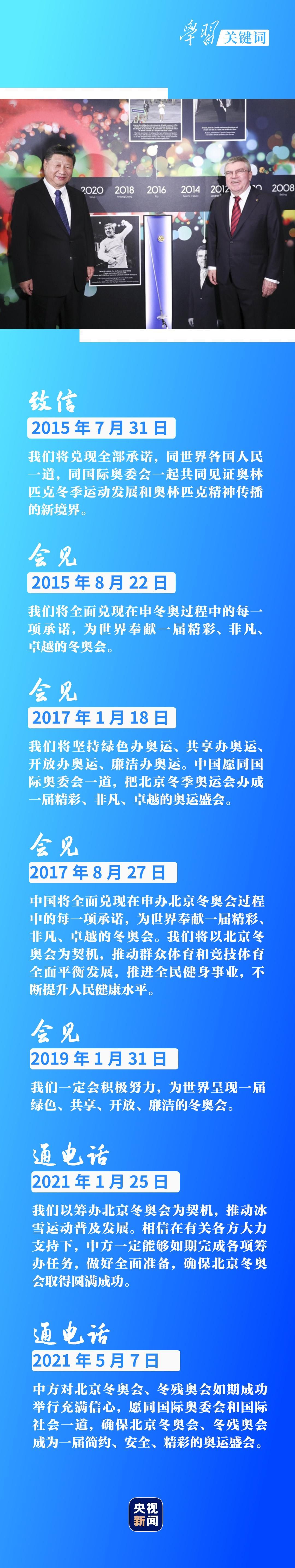 “全面兑现每一项承诺”“推动冰雪运动普及发展”,在同国际奥委会主席巴赫的互动中,习主席多次表明中国态度。