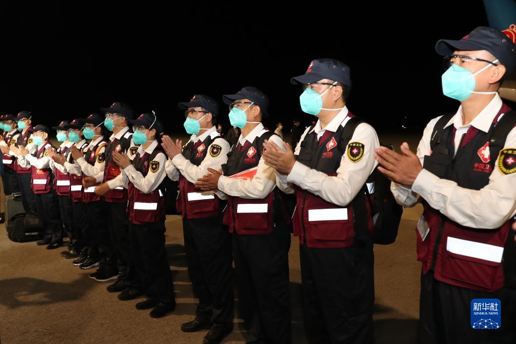 2020年5月24日凌晨,中国政府联合工作组抵达塔吉克斯坦首都杜尚别国际机场。同机抵达的还有中国政府对塔第三批抗疫援助物资,包括核酸检测试剂盒、呼吸机、医用口罩等。新华社发(中国驻塔吉克斯坦使馆供图)