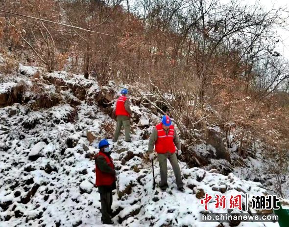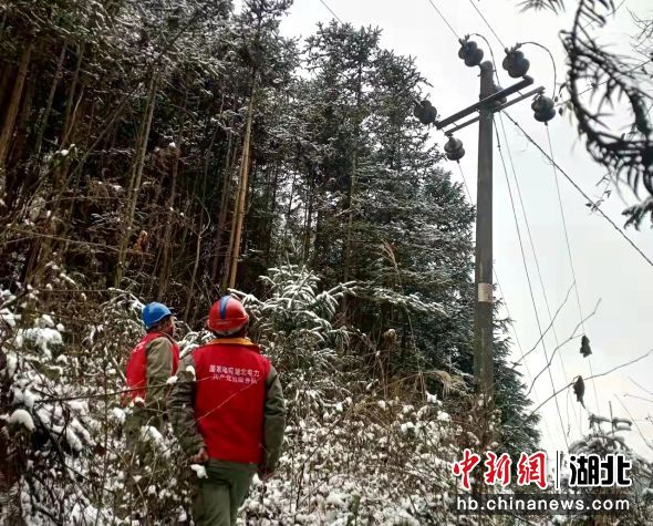 中新网湖北新闻1月27日电 (王军操)连日来,湖北房县遭遇雨雪冰冻天气,国网房县供电公司青峰供电所组织员工翻山越岭、踏雪巡线,全力以赴保供电。