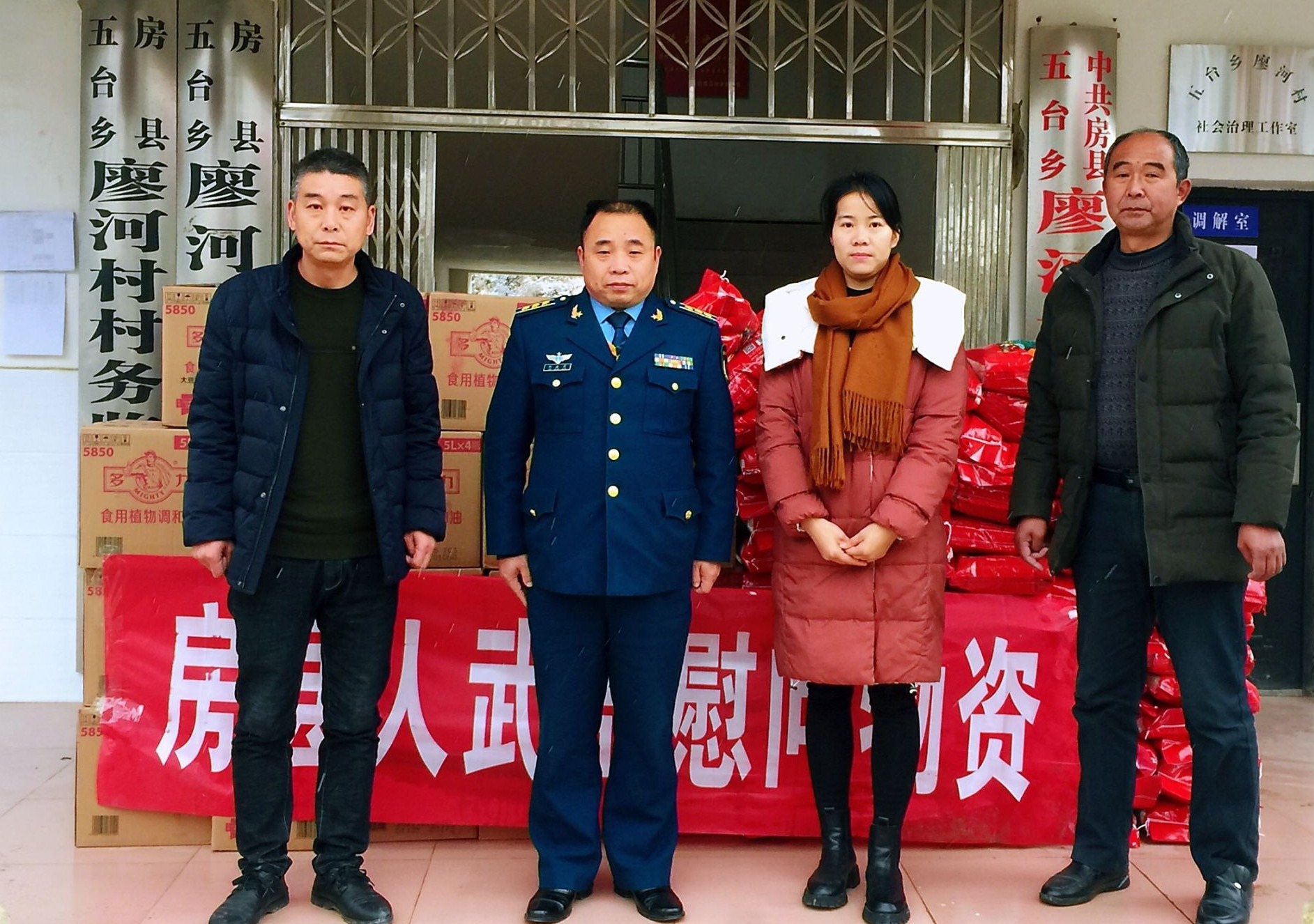 在五台乡廖河村,为全部退役军人送去粮油和米面,并表示退役军人曾为国防和军队建设、为祖国经济社会发展作出了重要贡献,我们决不能忘记退役军人在保家卫国中的巨大付出和光荣事迹,要时刻把退役军人的冷暖挂在心上,做到政治上尊重、生活上照顾,努力帮助他们解决生产生活困难,让广大退役军人充分感受到党和政府的温暖。