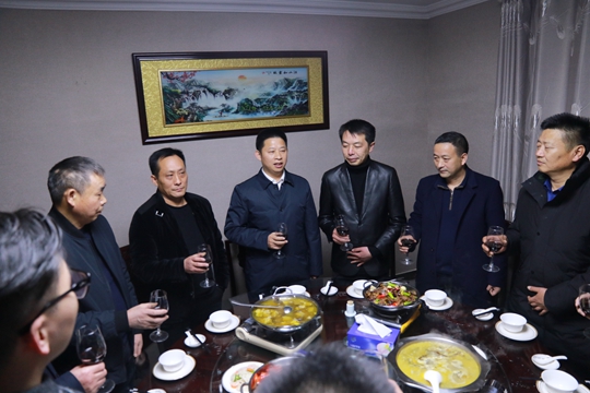 纪道清与在房过年企业家共吃团年饭
