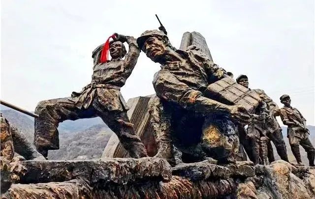 据悉,“强渡三道绳”群雕由房县退役军人事务局和房县姚坪乡人民政府筹资建设,旨在缅怀先烈,弘扬烈士精神。群雕上部为红军和红补军雕像,他们站在浮桥上或蹲或站或趴,手持砍刀、枪支,呈冲锋姿态,神情肃穆,目光如炬。