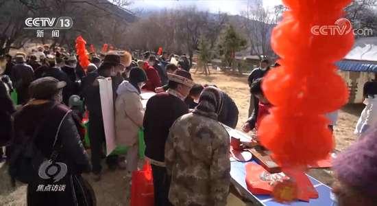 不只是嘎拉村,总书记牵挂的是雪域高原上成千上万个达瓦坚参家这样的家庭,牵挂的是西藏自治区360多万勤劳质朴的人民。一年来,西藏全区新冠疫情零输入、零感染,地区生产总值突破2000亿元,规模以上工业增加值增长11%以上,社会消费品零售总额增长10%左右。乡村振兴深入实施。消除返贫风险4467户18597人。启动建设乡村振兴示范村100个,实施帮扶项目2126个。新型农村集体经济组织达6172个。无数个美丽幸福的“嘎拉村”,正在这片云端的土地上,像初春的桃花蕾,悄然萌发。嘎拉村的乡亲们也为大家送上新春的祝福。