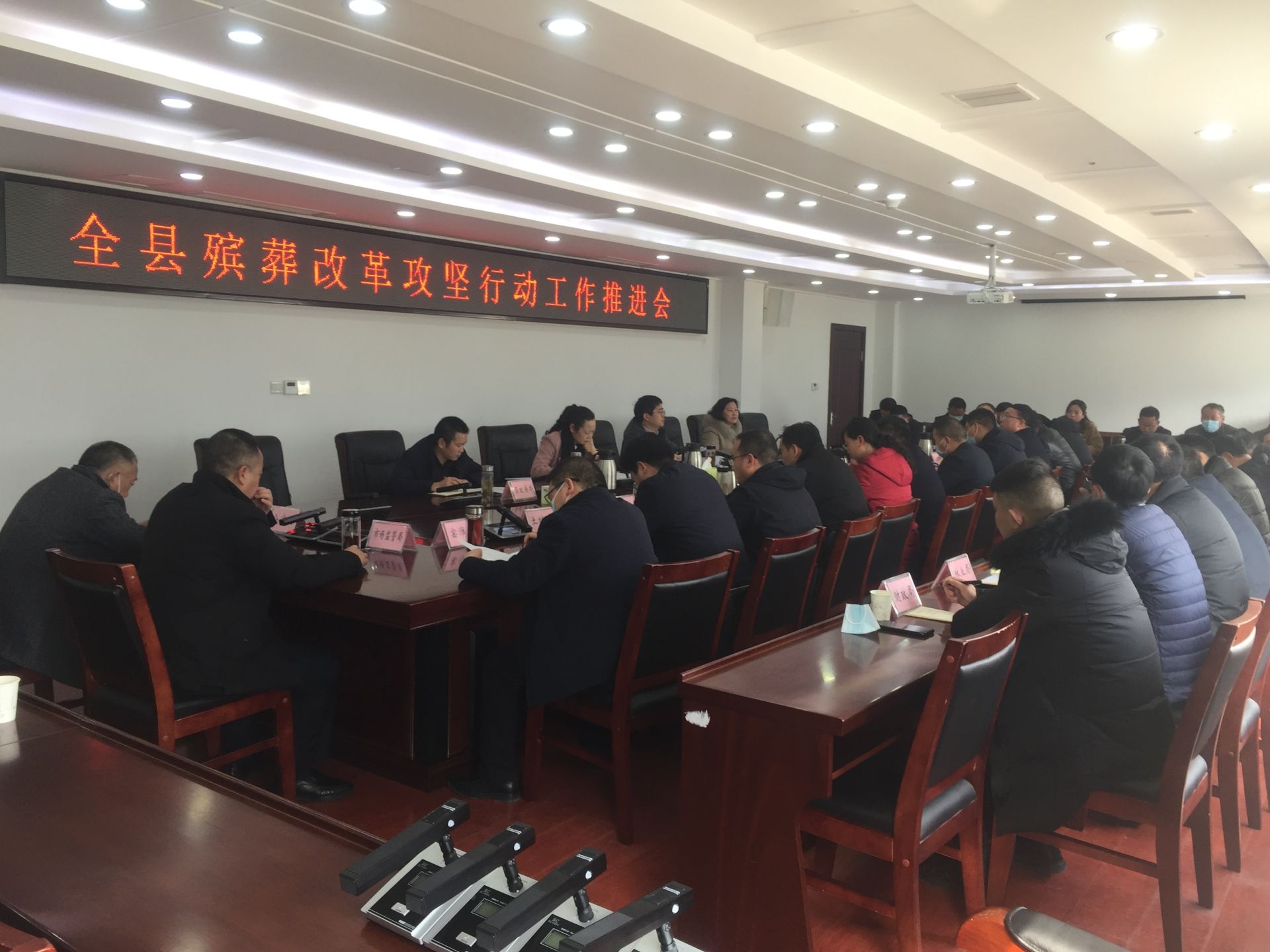 房县新闻网讯 记者 宋 钱 报道:21号,全县殡葬改革攻坚行动推进工作会召开。会议听取了攻坚行动各成员单位前阶段工作进展情况汇报,总结成绩、突出亮点、正视不足,安排部署下阶段工作任务。县委常委、宣传部长王玲参加会议。