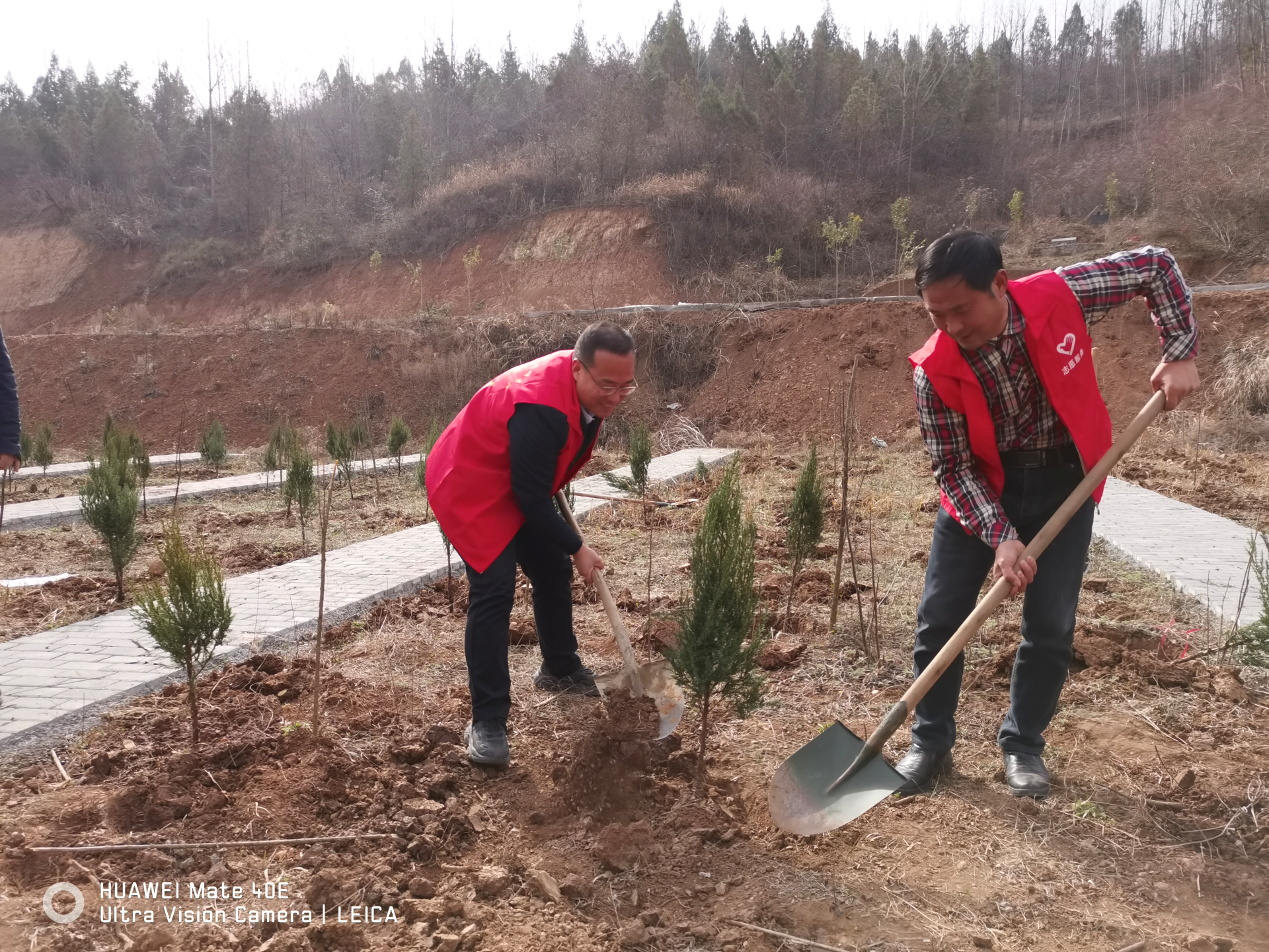 上午9点,镇党委领导一行来到义务植树点与干部职工一起加入到植树的队伍中。为确保树苗成活率,镇林业站杨站长现场为大家讲解树苗栽种技巧、示范栽种步骤,干部们精神高涨、干劲十足,三四人一组分工配合,扶正树苗、挥铲培土、踩实浇水,整个现场一派热火朝天的劳动景象。