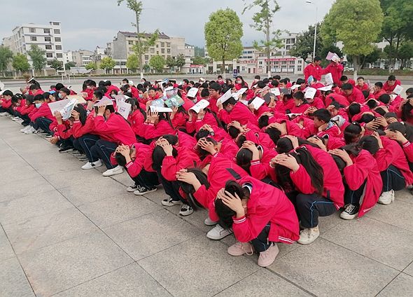 演练中,全体1000余名师生用时1分23秒,及时撤离到安全区域,无一人受伤,没有踩踏事件发生。