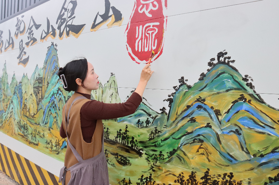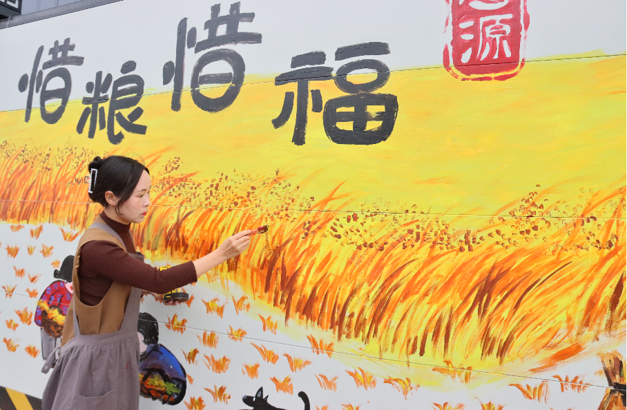彩绘现场,美术教师巧妙利用校园外一面面工地建设防护板,选图、勾形、上色、精修……手中的画笔时而急速驰骋,时而缓慢移动,或勾画花草稻谷,或点染青山绿水,或执笔行云流水。经过两天的奋战,用五颜六色的颜料将一幅幅主题鲜明、风格各异的墙绘作品巧妙绘就,用手中的画笔绘上“清正廉明”“绿水青山”“惜粮惜福”等方面内容,一幅幅栩栩如生的主题画映入眼帘,原本灰色单调的防护板焕发出了新的活力,为学校文化建设注入了发展新内涵。