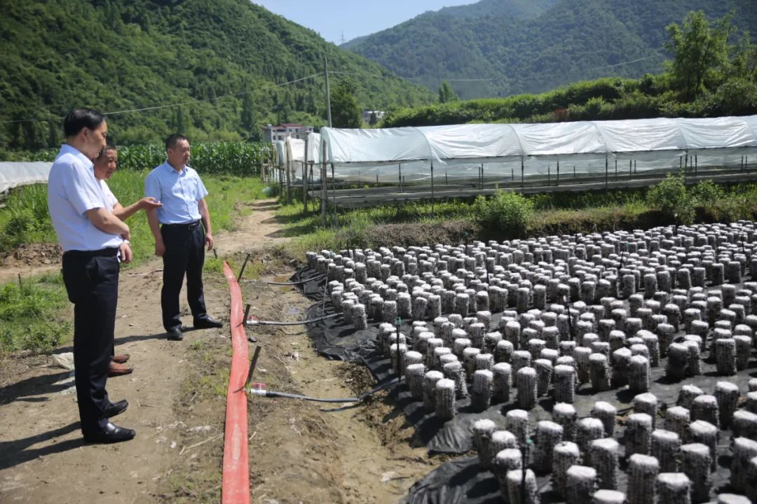 房县农商行党委书记、董事长辛明宏查看木耳生长情况