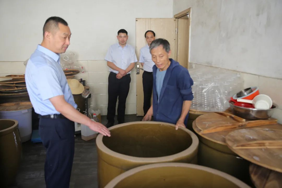 在土城镇土城村慧泉黄酒作坊,辛明宏实地参观了黄酒生产间、销售间,就黄酒酿造工艺、存放方法、经营成本等与农户进行深入交流探讨,为农户算清盈利账,并表示农商行将持续支持黄酒产业发展,加大金融支持力度,为农户产业发展提供有温度、有力度的金融服务。