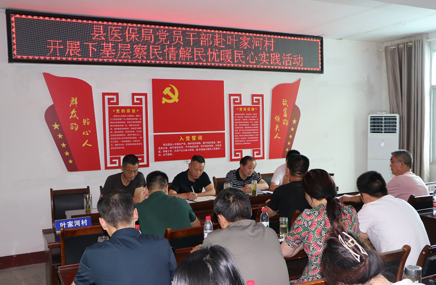 活动当日,县医保局机关党支部联合叶家河村党支部召开6月份支部主题党日活动暨“下基层、察民情、解民忧、暖民心”实践活动座谈会。集中传达学习省第十二次党代会精神,听取该村老党员及村两委干部的意见建议。