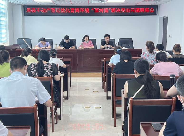 房县新闻网讯 通讯员 刘俊峰 陈萍 报道:为持续优化营商环境,减轻企业压力,解读房县不动产登记在优化营商环境工作中的重点内容和亟需解决的问题,6月22日下午,在房县政务服务大厅4楼会议室,25家房地产开发企业、7家银行相关业务人员和不动产登记窗口全体工作人员开展了解决不动产登记优化营商环境突出问题商榷会。