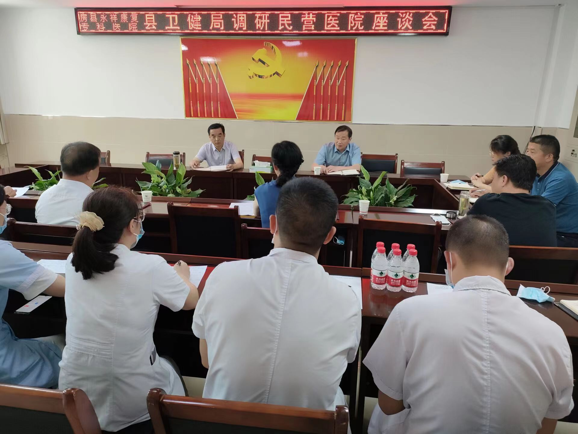 房县新闻网讯 通讯员 戢金梅 皮学会 报道:为深入贯彻落实党员干部下基层察民情解民忧暖民心实践活动,6月23日至24日,由县卫健局党组书记、局长陈吉华,局党组成员、副局长宦忠恒,局医政股、疾控股、办公室相关同志组成的调研工作组对全县7家民营医疗机构基层党建、医疗质量、医疗安全、疫情防控、公共卫生等重点工作开展调研,认真听取民营医院的呼声,为民营医院发展排忧解难。