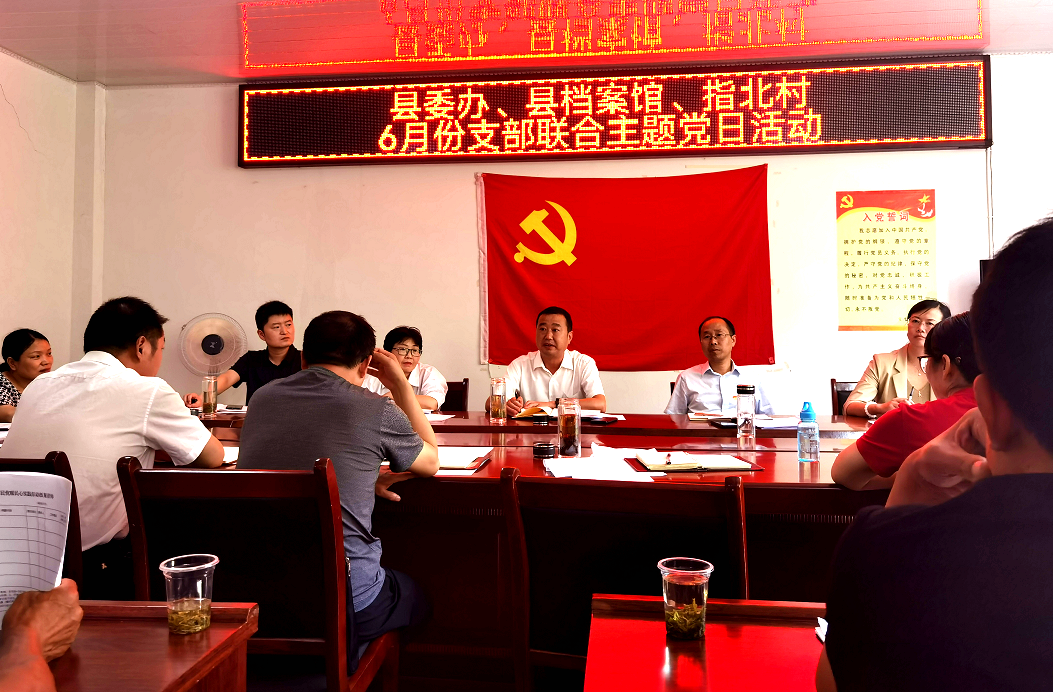 房县新闻网讯 通讯员 张菜萌 报道:6月24日,县委办、县档案馆、军店指北村举行6月份联合主题党日活动暨理论学习中心组学习、党员干部下基层察民情解民忧暖民心实践活动,县委常委、县委办主任林云国,县委办、县档案馆、军店镇指北村党员干部参加会议。