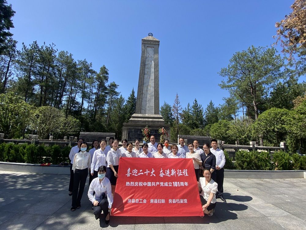 致敬革命先烈,激发前进动力。在房县烈士陵园,全体党员干部为革命事业英勇献身的英烈敬献花篮,深切缅怀革命先烈的英勇事迹,随后,全体党员集体重温入党誓词,感悟入党宣誓时的庄严承诺和坚定决心。参观红色基地,筑牢思想根基。在房县革命烈士纪念馆、房县退役军人之家、房县一中党史教育展览馆等红色教育基地,全体党员干部用心聆听讲解员讲述,认真观看革命文物和珍贵史料,共同追忆革命先辈的英雄事迹,从红色历史和红色文化中汲取精神力量。观看红色电影,回望建党历程。发挥红色电影的教育作用,持续推进党史学习教育走深走实,县总工会开展“观看红色电影 回望建党历程”活动,组织全体干部职工观看革命历史教育影片《建党伟业》,通过直观的光影故事,引导广大职工群众沉下心学好百年党史,厚植爱党、爱国、爱社会主义的情怀。走访慰问党员,关怀温暖人心。县总工会领导走访慰问总工会离退休老党员李国政,通过走访慰问让老党员切实感受到党组织的关心和爱护,增强党员对党组织的归属感。做实下察解暖,解难题办实事。组织党员干部访企进村入户,开展宣传宣讲、现场答疑解惑,用心用情用力解决群众身边的操心事、烦心事、揪心事,提升群众的安全感、幸福感、获得感,让党员干部在实践活动中提高党性修养、增强宗旨意识。结对共建聚合力,互学互联共提升。县总工会联合县妇联、县档案馆开展了“喜迎二十大 奋斗新征程”庆祝中国共产党成立101周年联合主题党日活动,在活动中党员们分享了个人对党史学习认识和心得体会,此次联合主题党日活动达到了结对共建聚合力、互学互促共提升的良好效果。