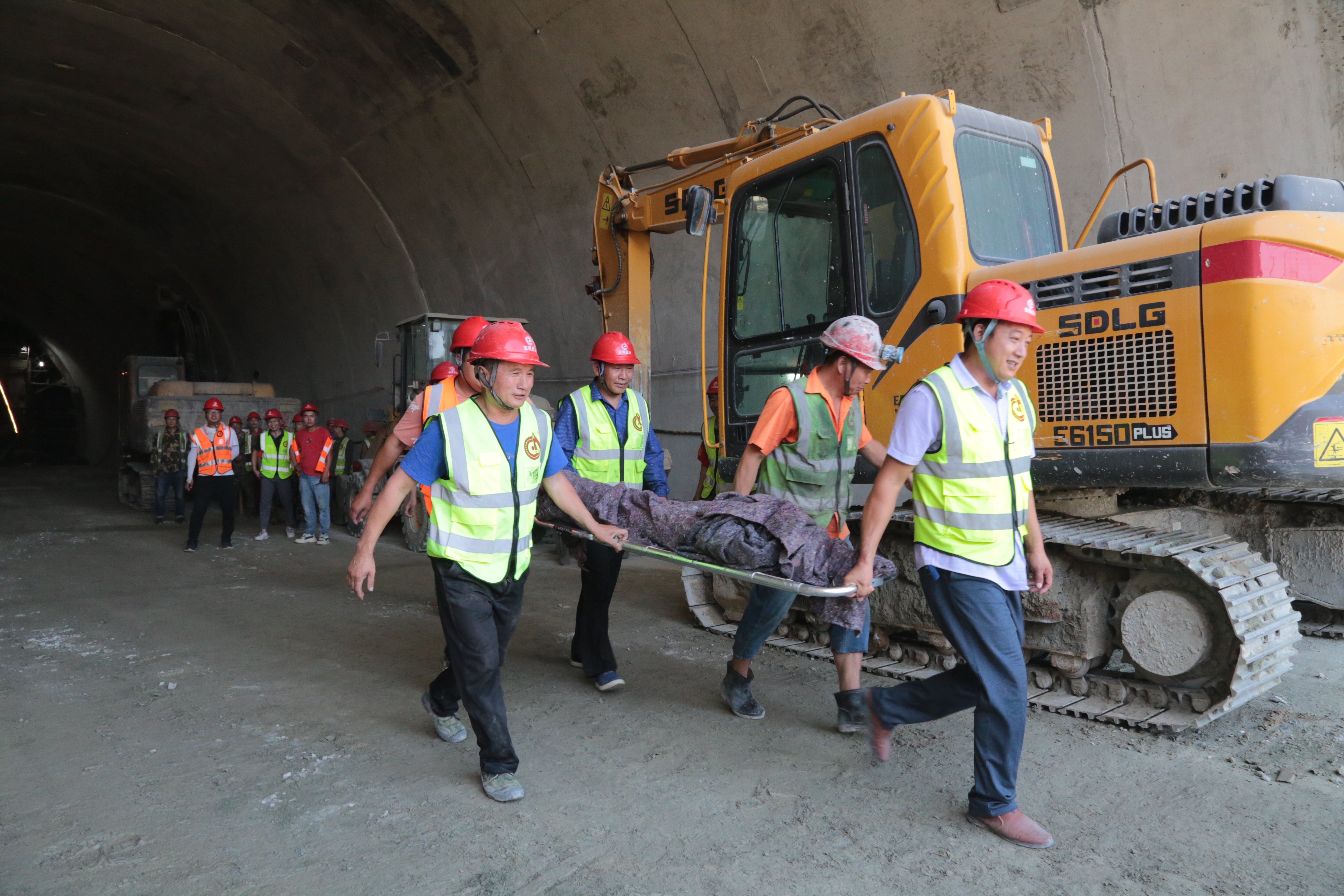 按照事先预案,参加人员分为现场指挥部、应急抢险组、机械抢险组、综合保障组、警戒疏散组、通讯联络组和突发情况备勤组等多个小组。现场模拟隧道坍塌,人员掩埋受伤情况,应急抢险小组按照险情检查、险情上报、队伍集结、警戒疏散、应急救援等多个环节开展应急抢险演练。演练过程中,应急队伍反应快速、保障有力,险情发生后30分钟内,救援通道打通,模拟受伤人员得到有效救治。演练结束后,房县交通运输局相关负责人演练实效进行了总结和点评。