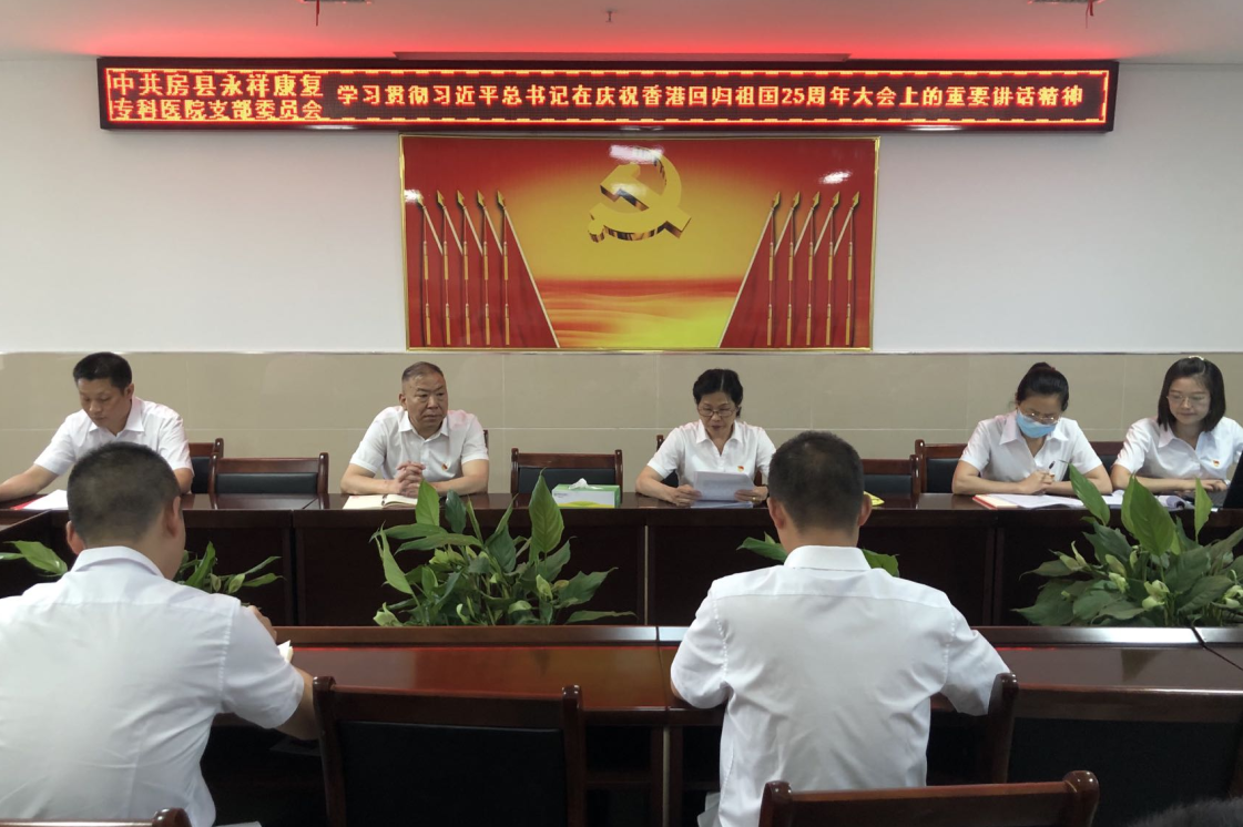 活动后,支部书记董桂荣同志带领大家学习贯彻习近平总书记在庆祝香港回归祖国25周年大会上得重要讲话精神。通过开展“七一”系列活动,持续增强了全体党员干部的宗旨意识、奉献情怀、担当精神。大家一致表示,将牢记初心使命、奋力担当作为,始终保持共产党员的先进性,为房县康复健康事业发展做出更大贡献,以优异成绩迎接党的二十大胜利召开。