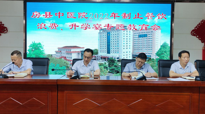 房县新闻网讯 通讯员 陈士军 报道:7月2日,房县中医院组织召开2022年制止餐饮浪费、升学宴专题教育会,医院领导班子出席会议,全院中层干部及环节负责人参加会议。