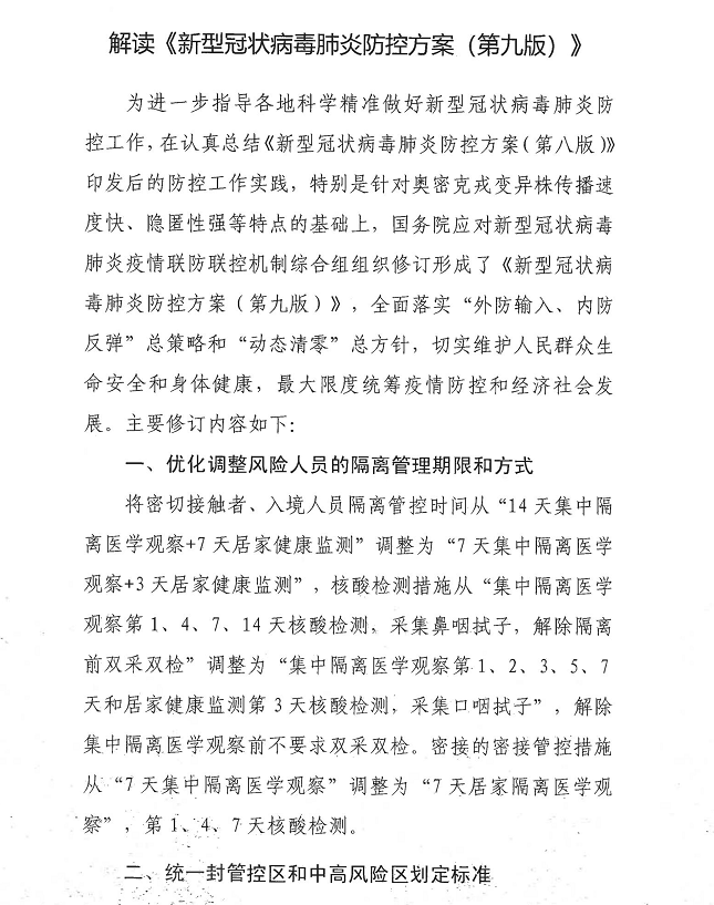 解读《新新冠状病毒肺炎防控方案(第九版)》