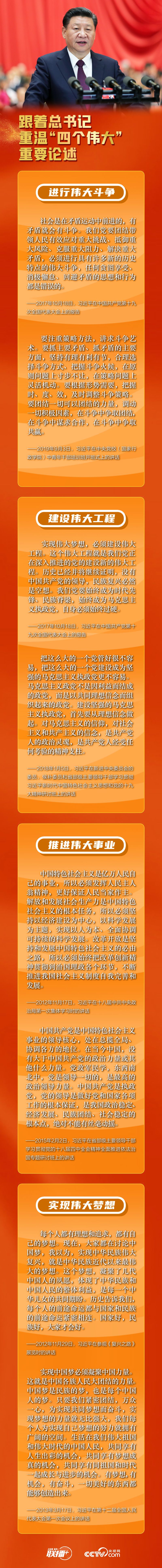 联播+习近平总书记在党的十九大报告中强调,实现伟大梦想,必须进行伟大斗争,建设伟大工程,推进伟大事业,并深刻指出四者“紧密联系、相互贯通、相互作用”。