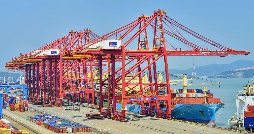 浙江宁波,舟山港,梅山港区集装箱码头。